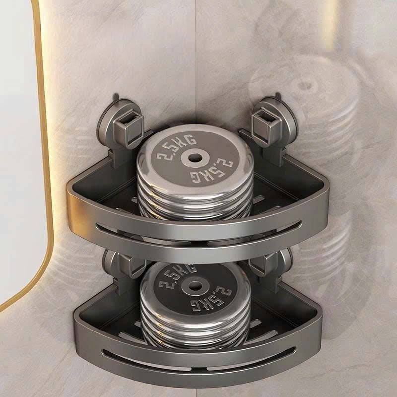 Este estante de esquina ayuda a organizar el baño sin perforar la pared. Se instala fácilmente sobre superficies lisas como cerámica o vidrio, ideal para el uso diario en la ducha.